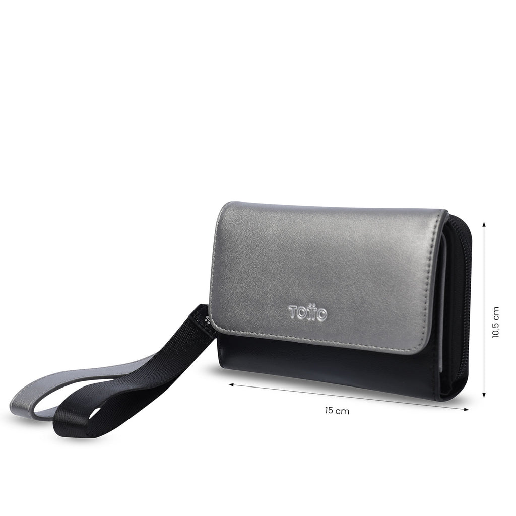 ¡Cambia, combina y protege con estilo! La billetera para mujer Style Can mediana de dos cuerpos incluye cierre en broche, bolsillo para monedas, malla interna, organizadores y sistema RFID Blocker. Su doble manija removible, en distintos colores, permite llevarla como llavero o accesorio. Hecha con forro RPET y exterior en poliuretano que aporta suavidad y ligereza.