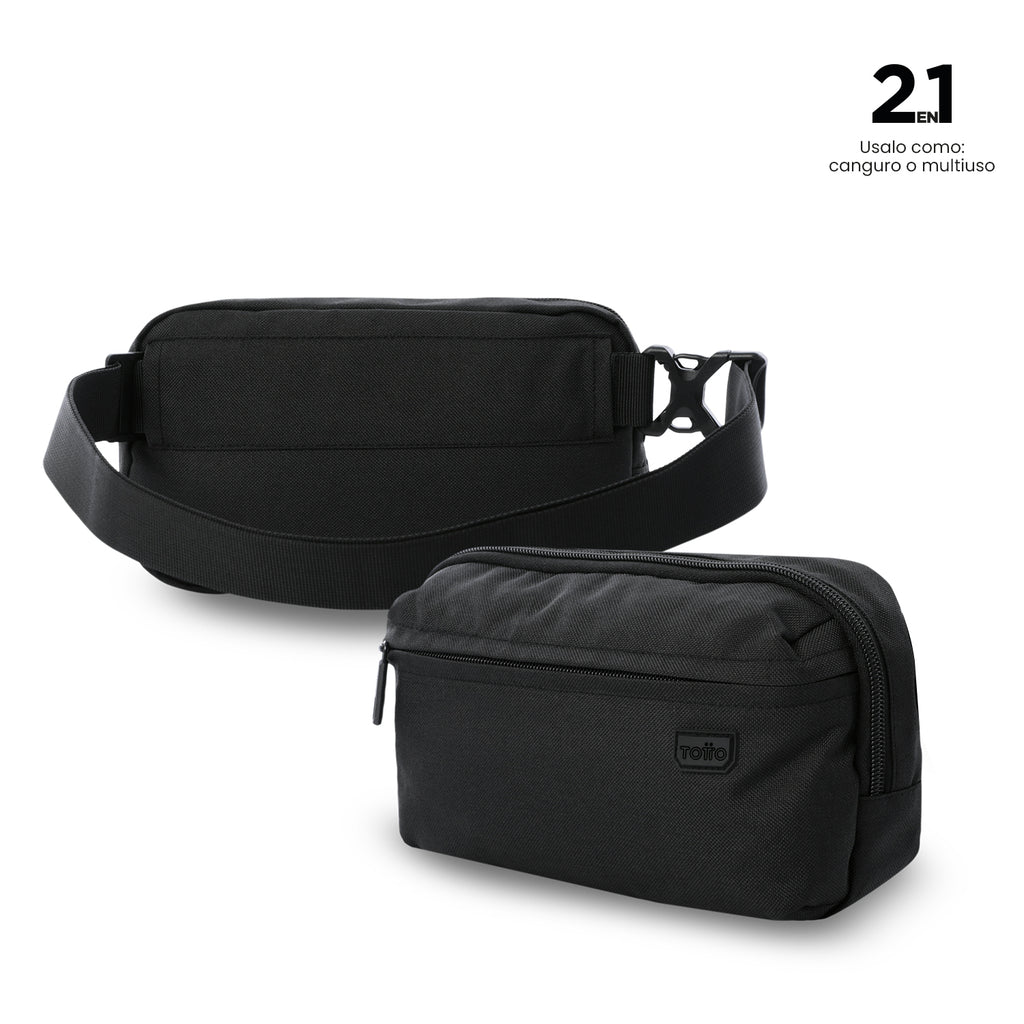 ¡Lleva todo inteligentemente con Riva, el canguro mediano que se transforma en neceser cuando lo necesitas! Sus compartimentos te permiten llevar llaves, objetos personales y más, con un bolsillo interno con cremallera para lo importante. Fabricado en poliéster resistente a la abrasión y forro RPET, no se deforma ni pierde color. Incluye portallaves, correas ajustables y logo Totto en goma. Multiplica funciones en poco espacio. ¡Todo, contigo! Especificaciones |