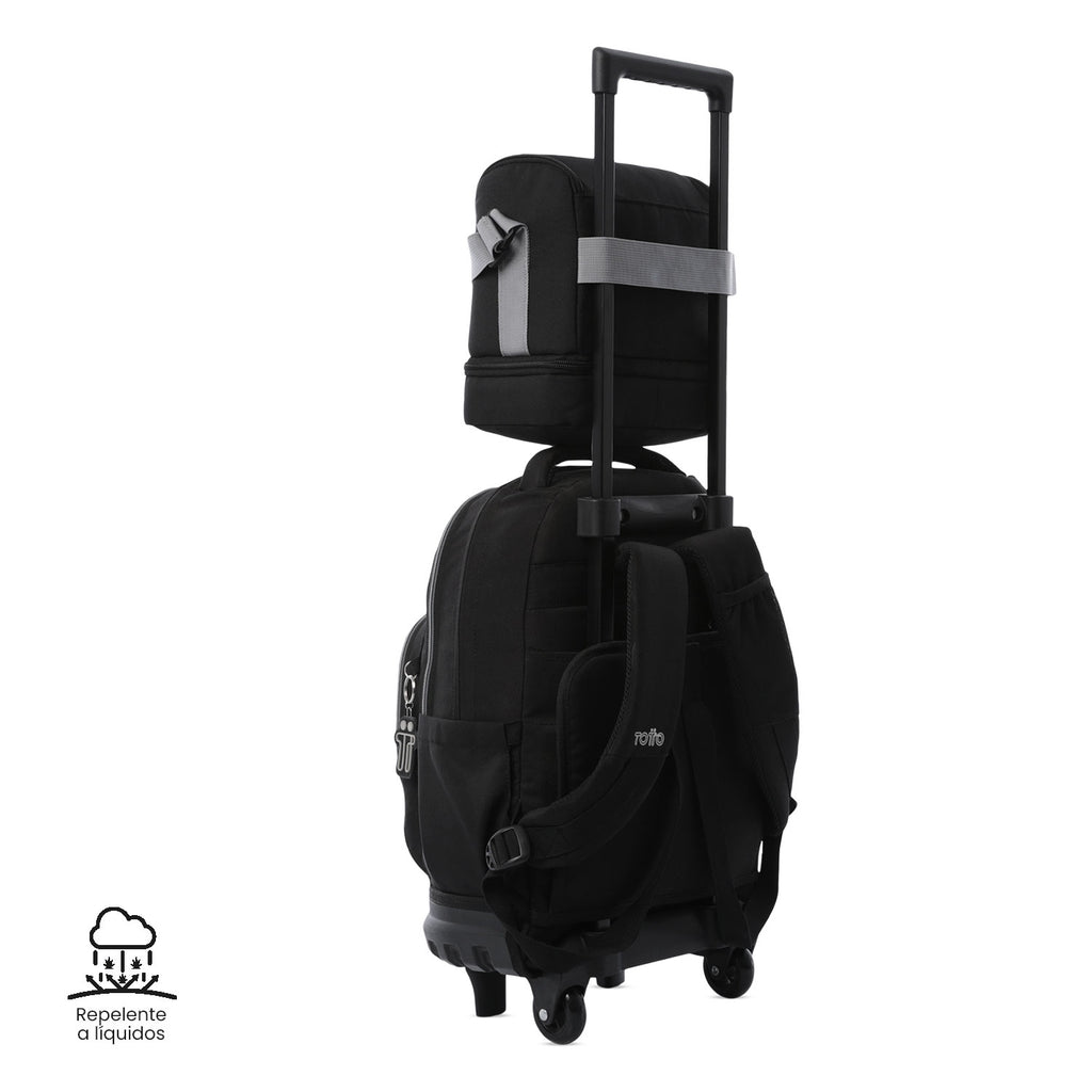 ¡Cuida tus alimentos y mantén la frescura perfecta! Esta lonchera térmica para almuerzo está fabricada en poliéster resistente, con forro de policloruro de vinilo y relleno de etil vinil acetato que ofrece aislamiento térmico hasta 5 horas. Su diseño incluye bolsillo auxiliar, correas ajustables y pasador para ruedas, además de ser repelente a líquidos y fácil de limpiar. Especificaciones |