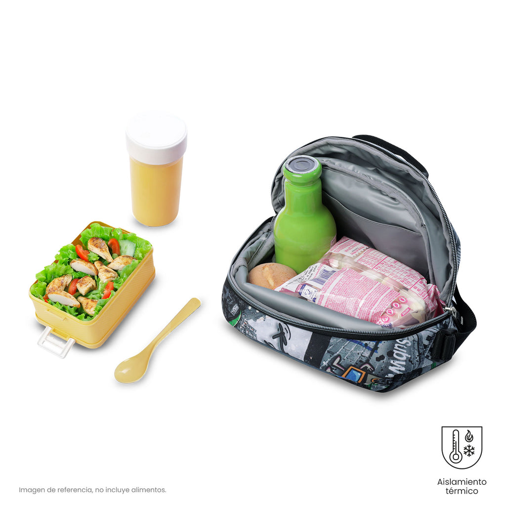 ¡Mantén tus alimentos frescos con la lonchera Borrador! Su tecnología térmica conserva la temperatura hasta por 5 horas, ideal para el día a día. Incluye elástico interno para sujetar botellas, pasador para sistema de ruedas y correas ajustables para mayor comodidad. Fabricada con botellas plásticas recicladas RPET, es resistente, fácil de limpiar y repelente a líquidos. ¡Consíguela hoy y disfruta de funcionalidad y sostenibilidad! Especificaciones |