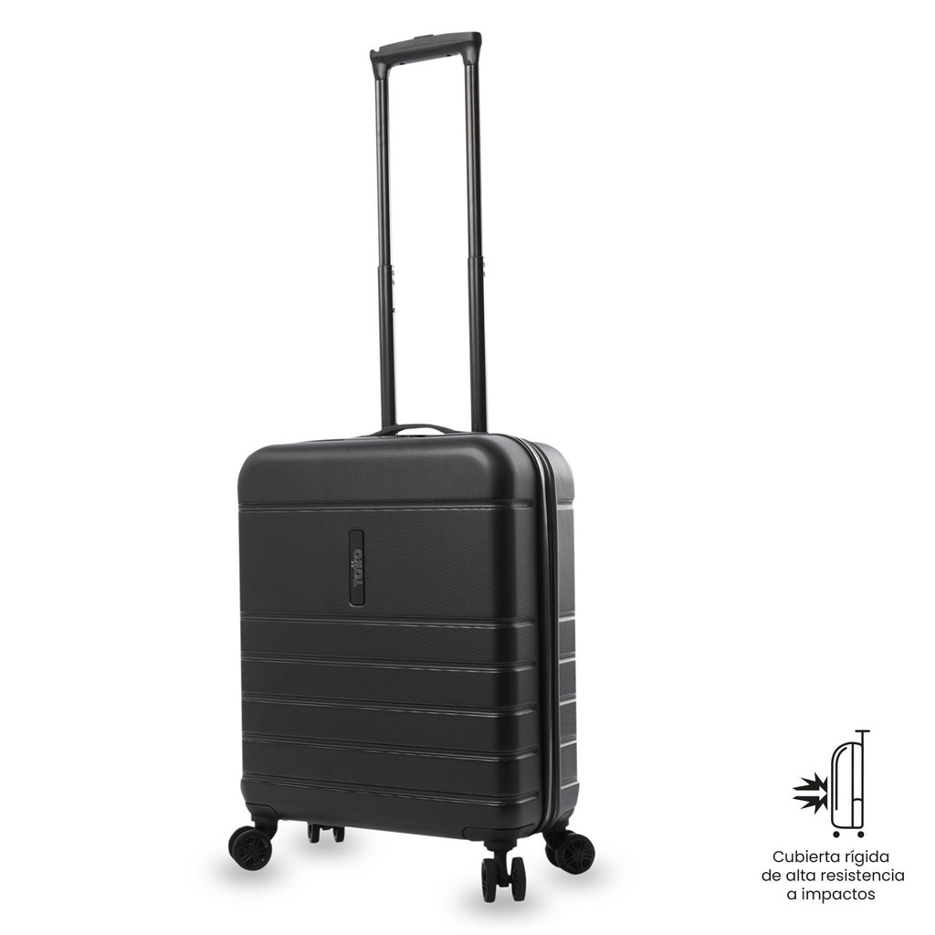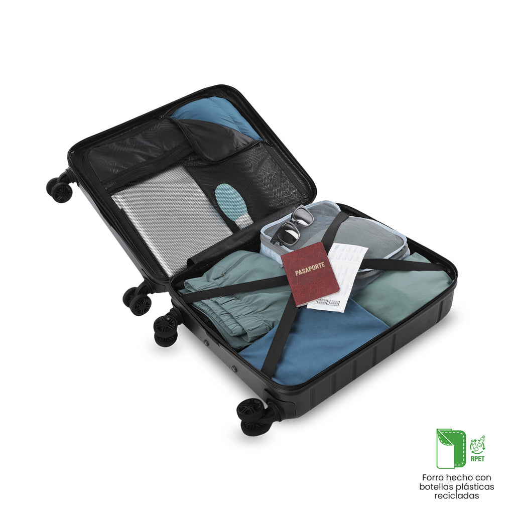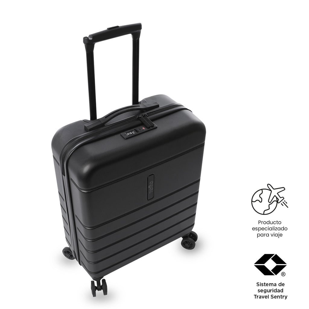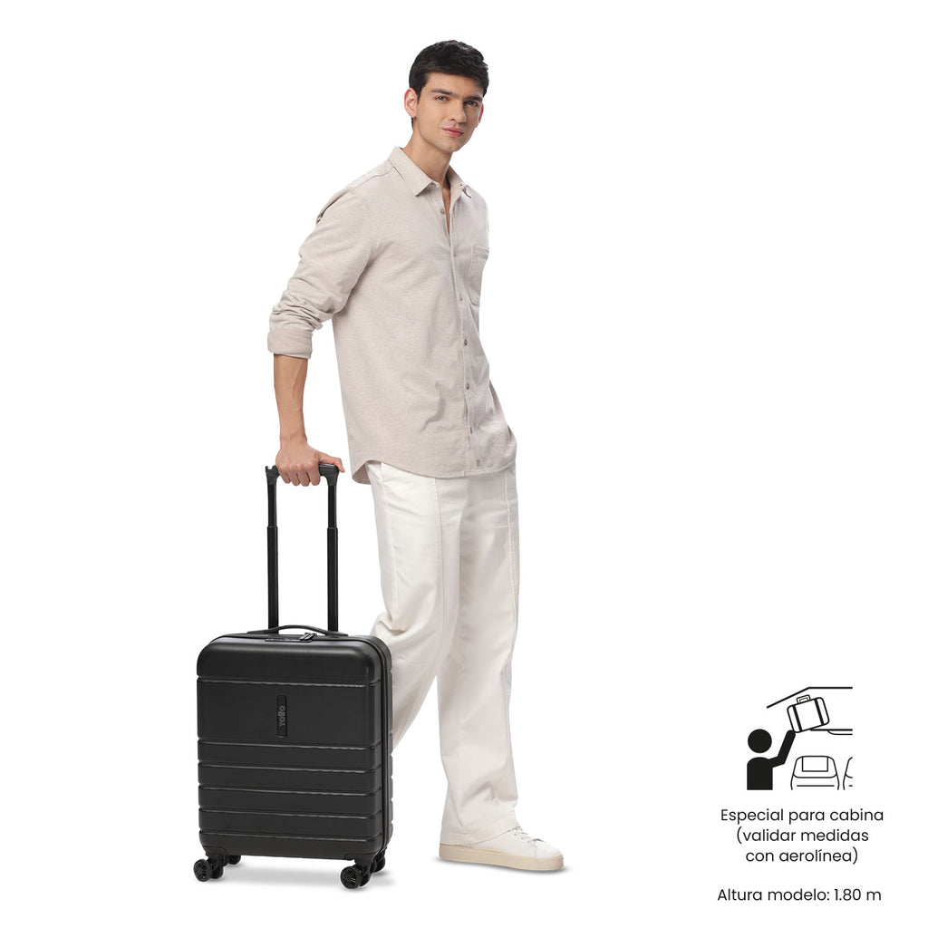 La maleta de mano 360 Prop es ideal para viajes cortos. Con capacidad de 10 kg, incluye 4 ruedas dobles 360° para un desplazamiento fluido y una manija telescópica ajustable para mayor comodidad. Fabricada en policarbonato+ABS, ofrece resistencia a impactos y durabilidad. Su interior está forrado en poliéster e incluye tapa en malla, correas de ajuste y candado de tres dígitos. Especificaciones |