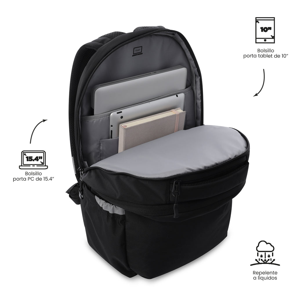 Mochila universitaria porta pc 15.4" indo negro unisex