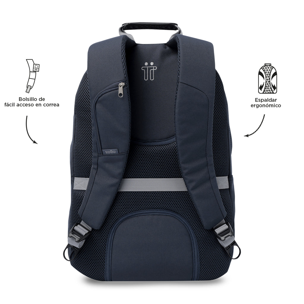 ¡Carga más y mejor todos tus días! Este morral para portátil cuenta con bolsillo para tu laptop de 15,4 pulgadas, bolsillo de fácil acceso en la correa, acceso vertical frontal, espacio para botella, gafas, sombrilla u otro accesorio pequeño, pasador para sistema de ruedas, organizador para portallaves, espalda ergonómica y correas con airmesh. Elaborado en lona resistente con forro RPET reciclado. Especificaciones |