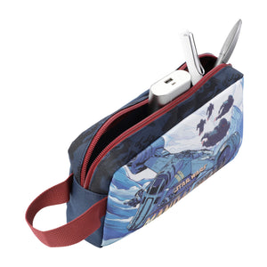 Práctica cartuchera multiuso con diseño exclusivo de Mandalorian. Cierre en cremallera y manija lateral para llevar en la mano con comodidad y seguridad.