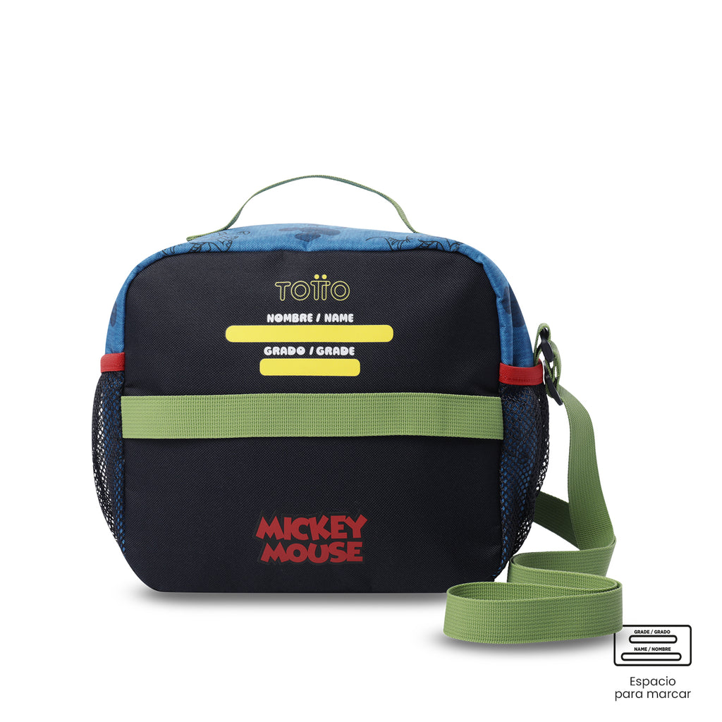 ¡Organiza y conserva sus alimentos con la lonchera Mickey! Su aislamiento térmico mantiene la frescura hasta por 5 horas, mientras el compartimento principal de gran capacidad con cierre doble resguarda todo. Reata ajustable para llevar en hombro o cruzada y banda trasera para fijarla al morral de ruedas. Incluye espacio para personalizar con su nombre. Especificaciones |