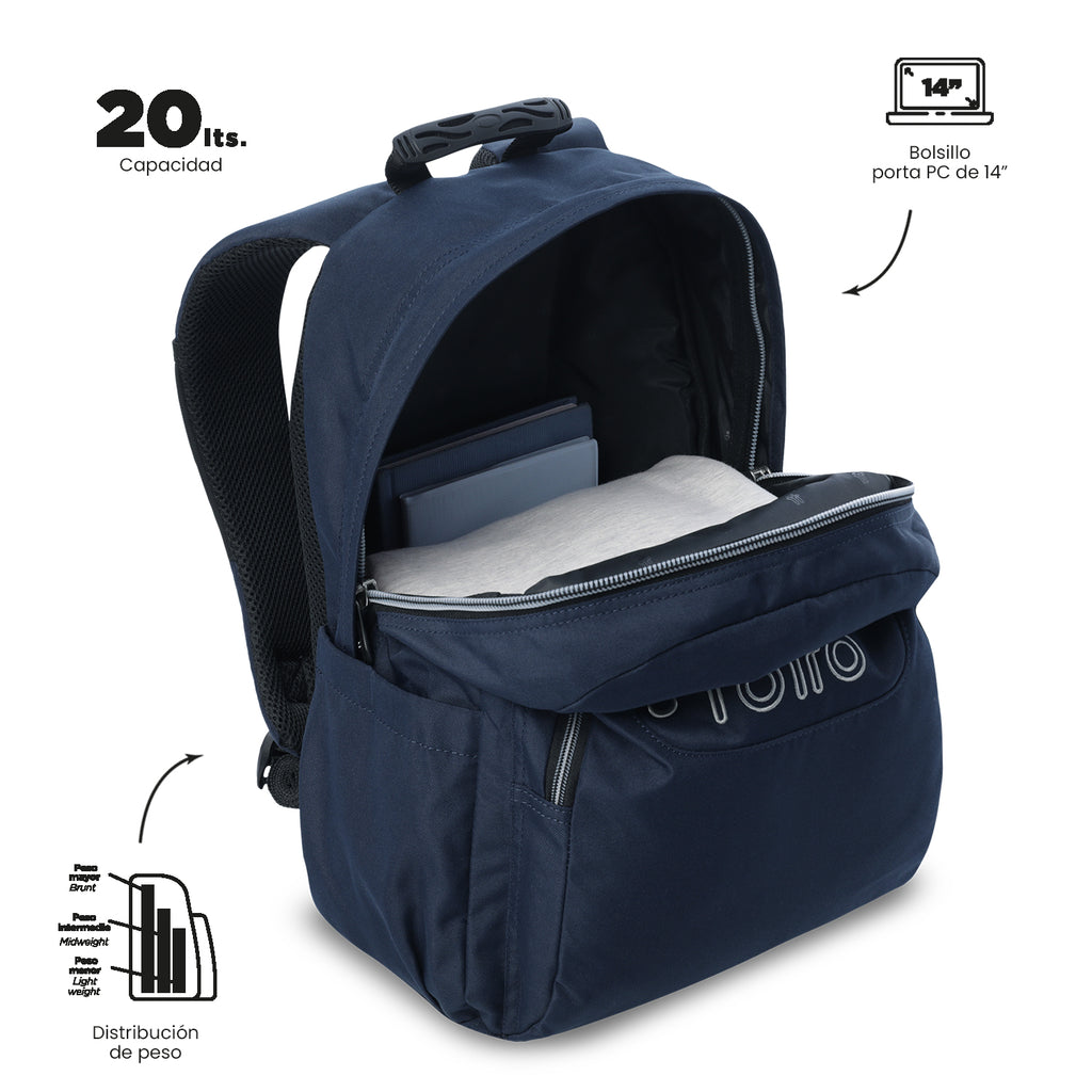 ¡Consigue tu maleta para el colegio ahora! Este morral es ideal para llevar tus útiles escolares con total seguridad. Fabricado con lona RPET, producto de 10 botellas recicladas, tiene una capacidad de 20 litros y ofrece bolsillos frontales de acceso rápido, organizador con portallaves, compartimento para botella, correas y espaldar ergonómicos con Air Mesh que te brindarán mayor comodidad. ¡Perfecto para tu día a día!