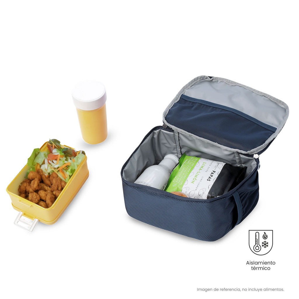 ¡Haz que tu comida llegue como debe con la lonchera térmica para almuerzo Mayson! Su diseño mediano cuenta con bolsillo para botella, malla interna y cierre práctico. Elaborada en poliéster resistente con forro que repele líquidos, es fácil de limpiar y conserva la temperatura hasta por 5 horas gracias a su tecnología térmica. Además, su diseño y su logo en goma le dan un toque sofisticado. Especificaciones |