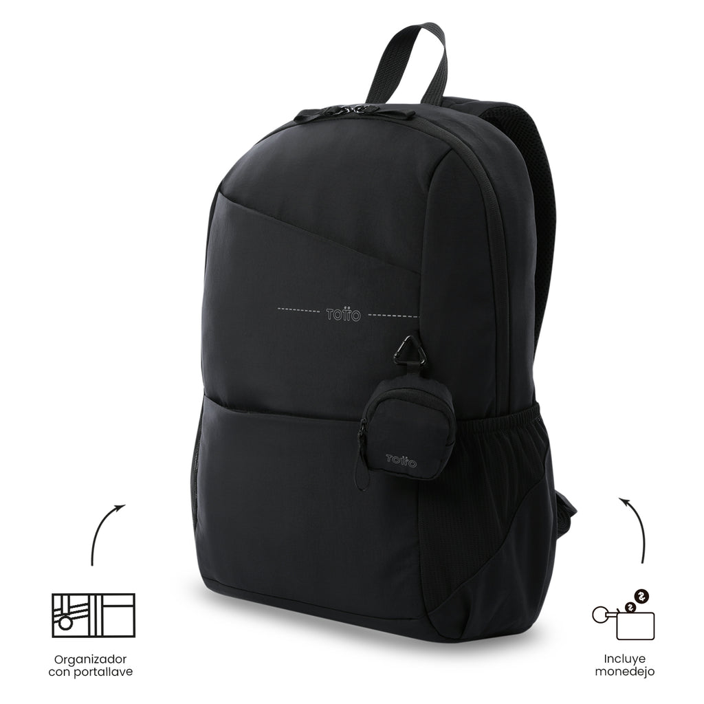 ¡Eleva tu día con practicidad! La mochila grande Suzuka está fabricado en poliéster de tacto suave y su forro RPET está hecho con botellas recicladas. Cuenta con compartimiento para laptop de hasta 16 pulgadas, bolsillo secreto, porta botella, organizador portallaves y pasador para sistema de ruedas. Incluye un llavero tipo monedero, perfecto para llevar audífonos u objetos pequeños. Diseñado para acompañarte con comodidad.