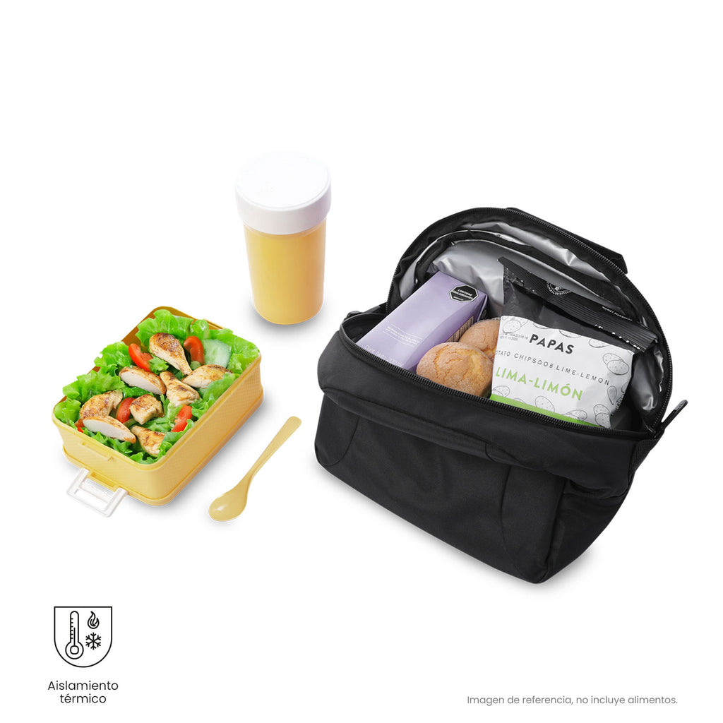 La lonchera térmica para almuerzo Trik mediana mantiene la temperatura hasta por 5 horas con ayuda de su aislamiento y cierre adecuado. Además, cuenta con correas ajustables, pasador para sistema de ruedas y forro en RPET. Su material facilita la limpieza y resiste el uso diario. ¡Mantén tu comida fresca sin complicaciones! Especificaciones |