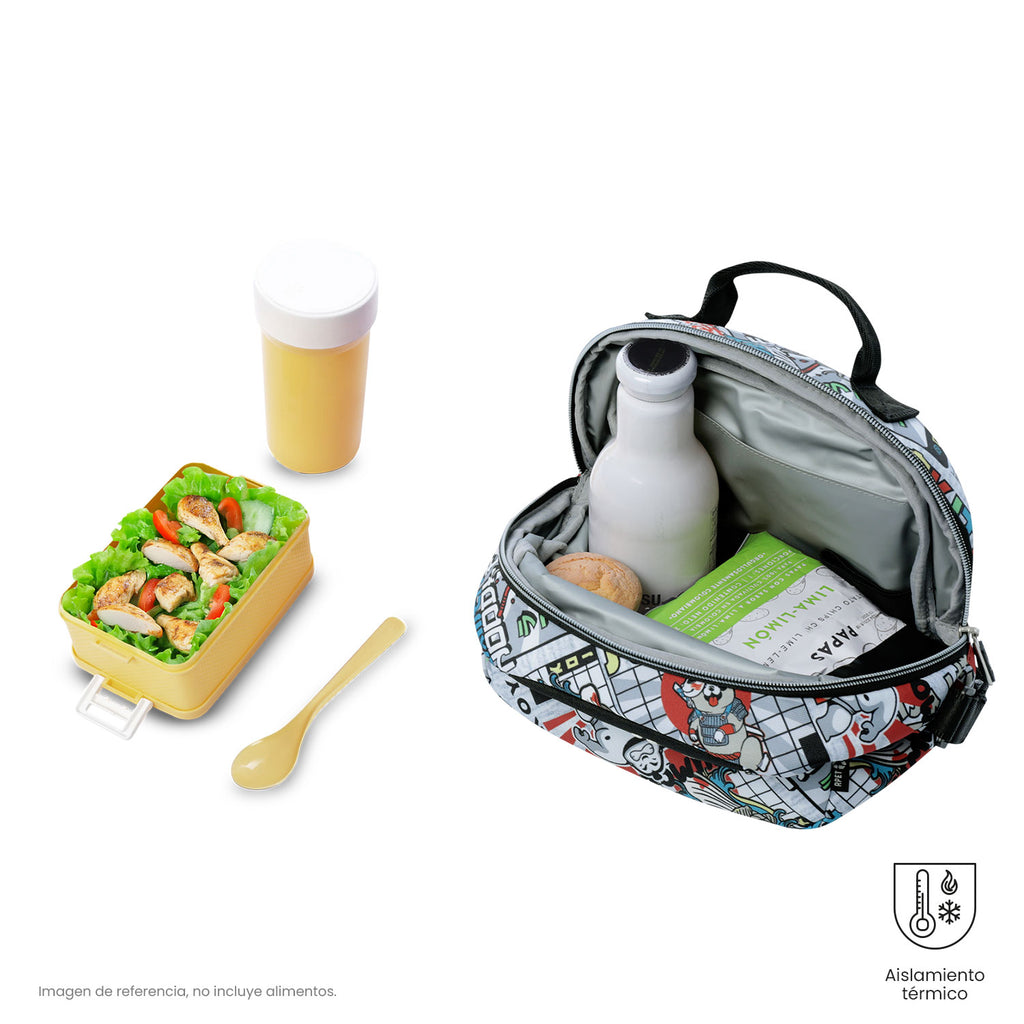 ¡Mantén tus alimentos frescos con la lonchera Borrador! Su tecnología térmica conserva la temperatura hasta por 5 horas, ideal para el día a día. Incluye elástico interno para sujetar botellas, pasador para sistema de ruedas y correas ajustables para mayor comodidad. Fabricada con botellas plásticas recicladas RPET, es resistente, fácil de limpiar y repelente a líquidos. ¡Consíguela hoy y disfruta de funcionalidad y sostenibilidad! Especificaciones |
