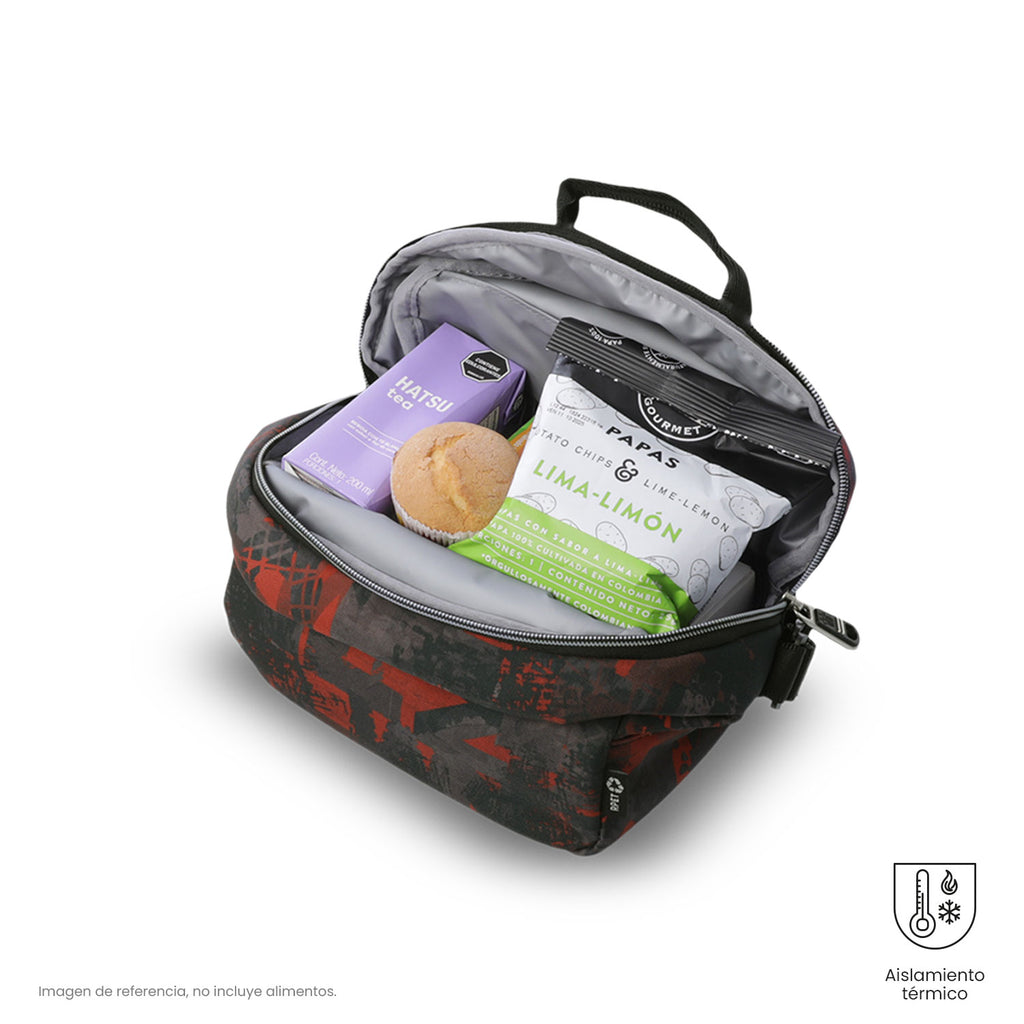 ¡Mantén tus alimentos frescos con la lonchera Borrador! Su tecnología térmica conserva la temperatura hasta por 5 horas, ideal para el día a día. Incluye elástico interno para sujetar botellas, pasador para sistema de ruedas y correas ajustables para mayor comodidad. Fabricada con botellas plásticas recicladas RPET, es resistente, fácil de limpiar y repelente a líquidos. ¡Consíguela hoy y disfruta de funcionalidad y sostenibilidad!