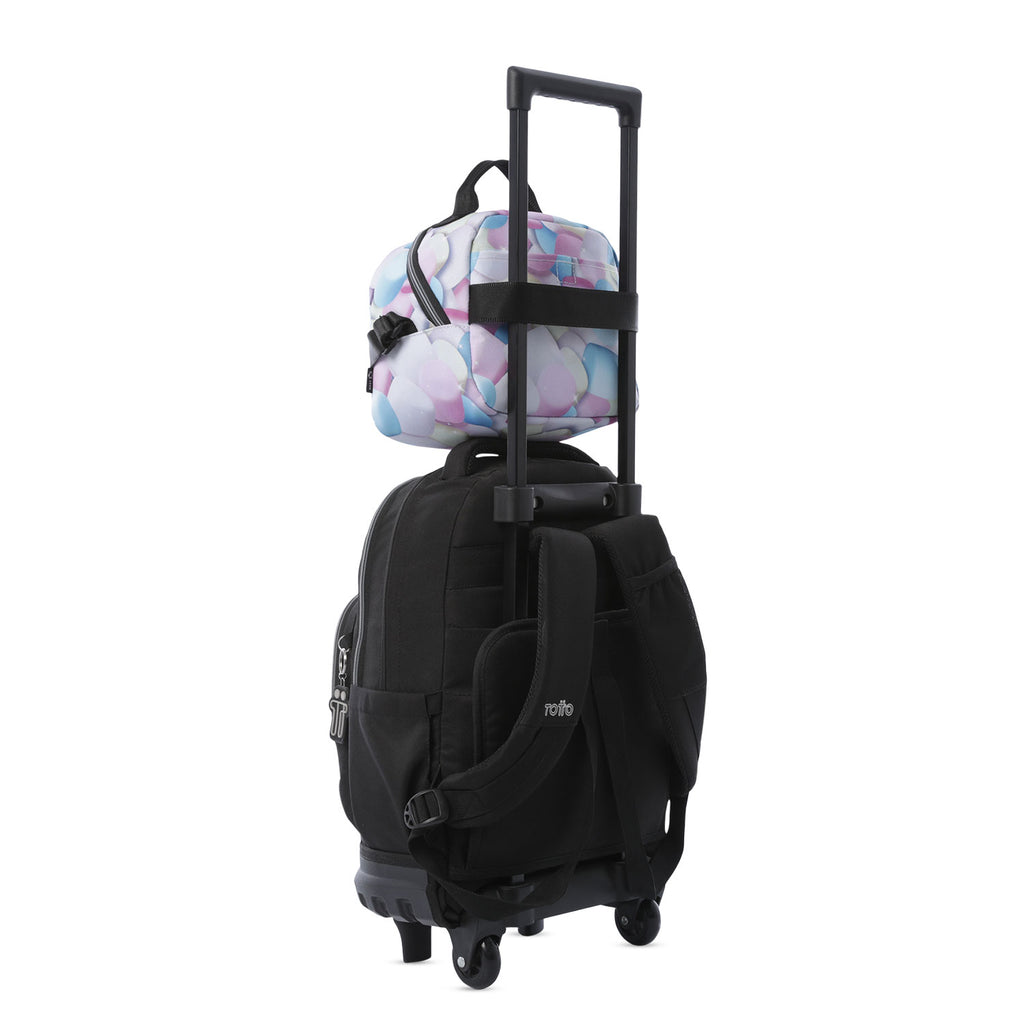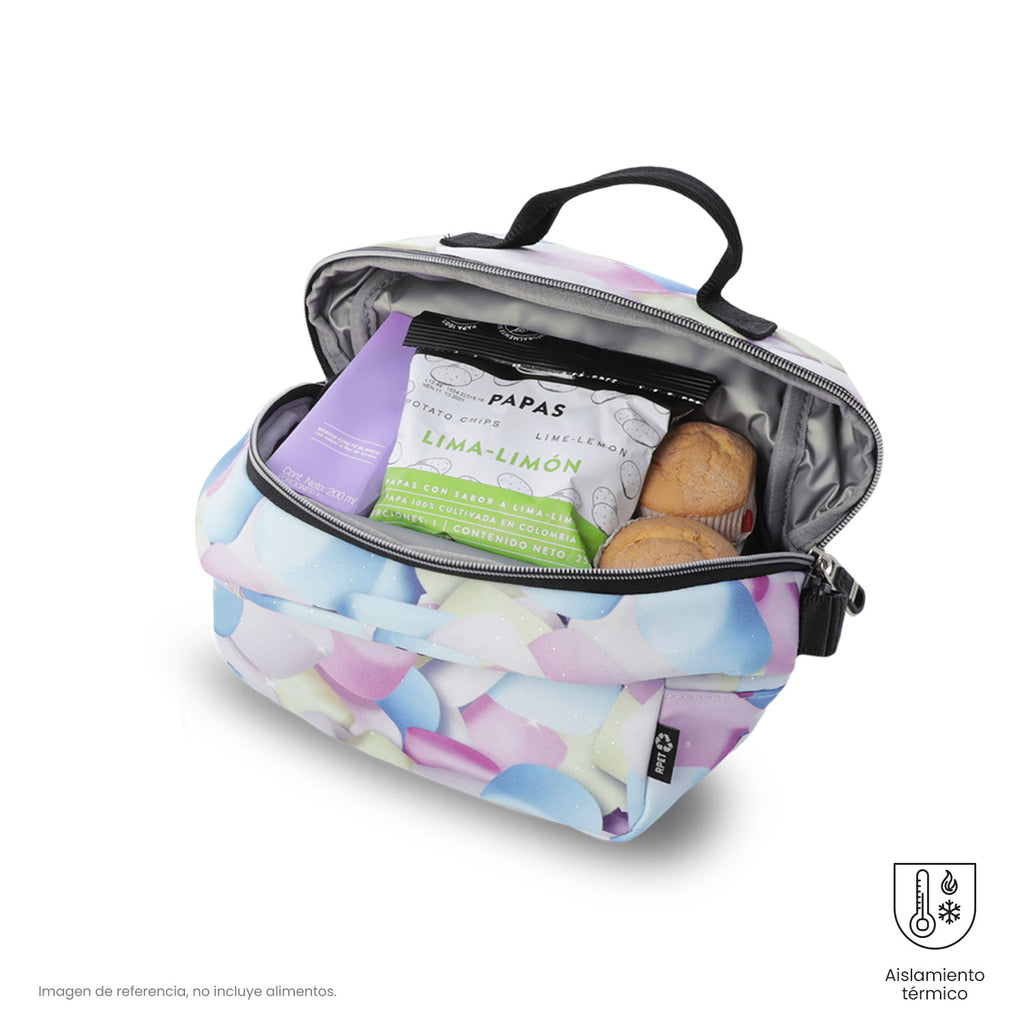 ¡Haz que cada almuerzo sea especial! La lonchera Borrador Glitter, fabricada con 3 botellas recicladas, aproximadamente, cuenta con tecnología térmico y mantiene la temperatura hasta por 5 horas. Incluye  correas ajustables y pasador para sistema de ruedas, además de ser repelente a líquidos y fácil de limpiar. ¡Consíguela ahora mismo!