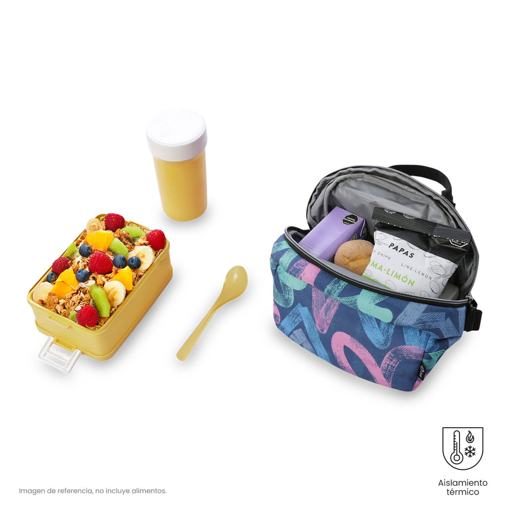 ¡Mantén tus alimentos frescos con la lonchera Borrador! Su tecnología térmica conserva la temperatura hasta por 5 horas, ideal para el día a día. Incluye elástico interno para sujetar botellas, pasador para sistema de ruedas y correas ajustables para mayor comodidad. Fabricada con botellas plásticas recicladas RPET, es resistente, fácil de limpiar y repelente a líquidos. ¡Consíguela hoy y disfruta de funcionalidad y sostenibilidad!