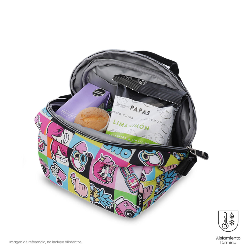 ¡Mantén tus alimentos frescos con la lonchera Borrador! Su tecnología térmica conserva la temperatura hasta por 5 horas, ideal para el día a día. Incluye elástico interno para sujetar botellas, pasador para sistema de ruedas y correas ajustables para mayor comodidad. Fabricada con botellas plásticas recicladas RPET, es resistente, fácil de limpiar y repelente a líquidos. ¡Consíguela hoy y disfruta de funcionalidad y sostenibilidad!