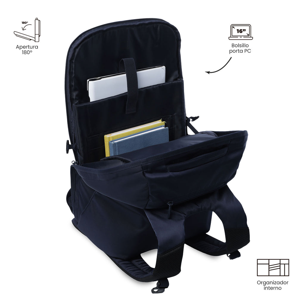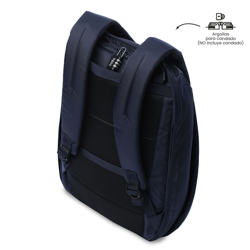 ¡Protege lo que importa! La mochila de seguridad Twill está diseñado con cremalleras ocultas que refuerzan la protección de tus objetos. Su estructura grande incluye bolsillo para portátil de hasta 16 pulgadas, apertura 180°, bolsillo secreto, pasador para sistema de ruedas, elástico multipropósito y argollas para candado. Cuenta también con compartimiento para termo o sombrilla interno, organizador, bolsillo con cremallera y mosquetón contramarcado.