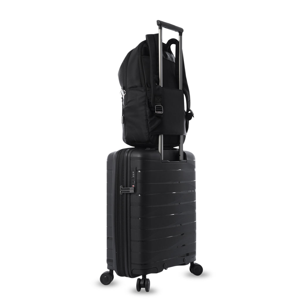 La mochila Roxanne combina funcionalidad y estilo, ideal para mujeres profesionales. Este modelo mediano incluye un bolsillo porta Laptop de 16", un bolsillo interno para botella y un organizador sencillo con cremallera. Fabricado en materiales de calidad, es suave al tacto, cuenta con detalles metálicos, pasador para sistema de ruedas, soportes protectores metálicos y correas acolchadas para mayor comodidad. ¡Lleva todo lo que necesites!