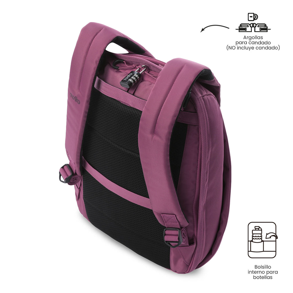 Mochila antirrobo porta pc 14" twill rosado mujer