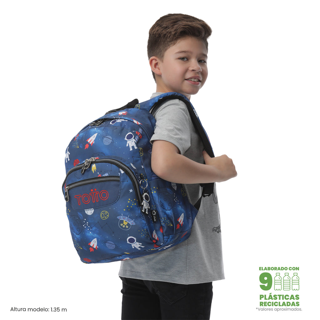 ¡Lleva tus útiles escolares con comodidad! El morral Gommas mediano está elaborado en lona RPET reciclada de 9 botellas plásticas, incluye organizador con portallaves, bolsillos laterales para botella o sombrilla, bolsillo en malla con elástico en correa para carnet, dos bolsillos frontales de acceso rápido, espaldar y correas ergonómicas con air mesh, llavero en goma con forma de luchador y manija de goma. ¡Llévalo al colegio!