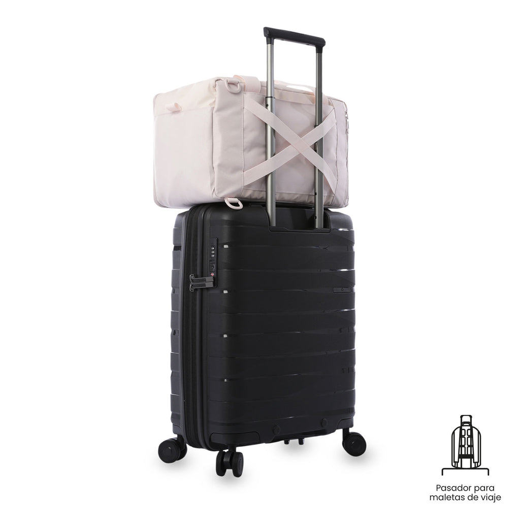 La tula viajera 2 en 1 Underseat es perfecta como artículo personal. Su diseño funcional incluye un pasador para ajustarse a la manija telescópica de las maletas de viaje, facilitando su transporte. Además, cuenta con una correa de hombro removible para mayor comodidad. Este accesorio práctico se adapta a tus necesidades durante el viaje, revisa las medidas con tu aerolínea antes de volar. ¡Hazla parte de tu equipaje!
