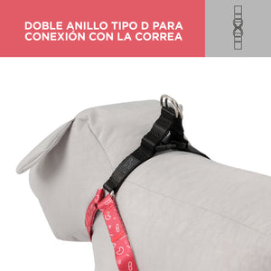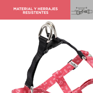 Arnés diseñado ergonómicamente para brindar una eficiente dispersión de la carga en tu mascota de raza mediana o grande. Elaborado en poliéster. Viene con un anillo en la parte superior y un mosquetón al frente para unirlo al collar, cuenta con control de dirección desde el pecho sin dejar de ser cómodo ya que en la parte interna viene con un recubrimiento acolchado evitando que la fuerza pueda lastimar a tu mascota, es de fácil postura, liviano y resistente.
