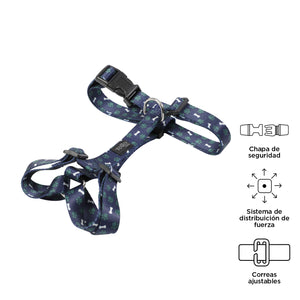 Arnés ideal para emprender una aventura con tu mascota su diseño tipo H permite reducir la presión en su tráquea y distribuirla por el resto de su cuerpo. Elaborado en poliéster permitiendo frescura y comodidad. Cuenta en la parte trasera con una cinta y dos asas: la primera la pones alrededor del cuello de tu mascota; la segunda, la pones alrededor de su pecho y con el cinturón lo unes en la parte inferior. Disponible en diferentes colores y tallas de acuerdo con el tamaño de tu mascota.
