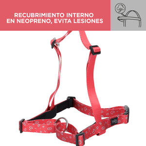 Arnés diseñado ergonómicamente para brindar una eficiente dispersión de la carga en tu mascota de raza mediana o grande. Elaborado en poliéster. Viene con un anillo en la parte superior y un mosquetón al frente para unirlo al collar, cuenta con control de dirección desde el pecho sin dejar de ser cómodo ya que en la parte interna viene con un recubrimiento acolchado evitando que la fuerza pueda lastimar a tu mascota, es de fácil postura, liviano y resistente. Disponible en diferentes colores y tallas.
