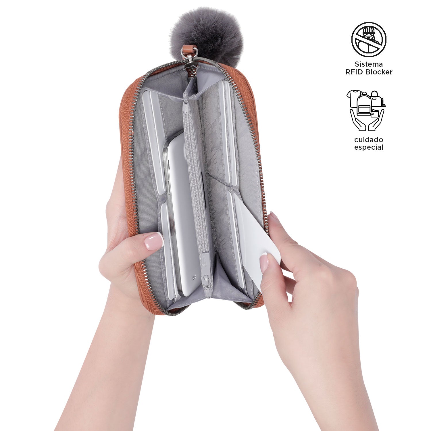 ¡La Billetera para Mujer con RFID Adelaide es amplia, segura y está llena de estilo! ideal para combinar con looks formales o casuales. Cuenta con once organizadores y un monedero para que tengas tus documentos y dinero siempre a la mano. Está fabricada en poliéster con cierre en cremallera y slider en forma de pompón. Además, cómo tu seguridad es lo más importante, la Billetera Adelaide incluye sistema RFID Blocker que evita la clonación de tus tarjetas. Comodidad, seguridad y estilo en un solo accesorio ¡Cómprala ahora!