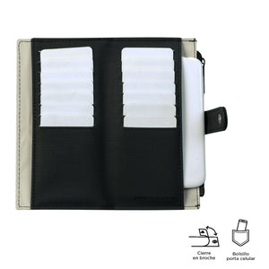 Con diseño espacioso y bolsillo porta celular, esta billetera para mujer ofrece funcionalidad y estilo. Equipada con RFID Blocker y cierre con broche, garantiza seguridad para tus pertenencias. Incluye organizadores para tarjetas y billetes, junto con un práctico pasador de mano. Fabricada con poliuretano y forro de poliéster, combina durabilidad con un toque de elegancia. Su logo combinado con plástico y metal añade un toque sofisticado. Una opción versátil para el día a día.