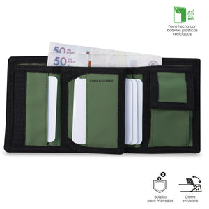 ¡Protege tu información y mantén el orden en tu día a día! La billetera Contrast Can cuenta con tres cuerpos, RFID Blocker, cierre en velcro, bolsillo para monedas y organizadores para billetes y tarjetas. Su forro RPET reciclado proviene de 3 botellas plásticas. Elaborada en material de alta resistencia con forro de poliéster, ofrece ligereza y durabilidad.