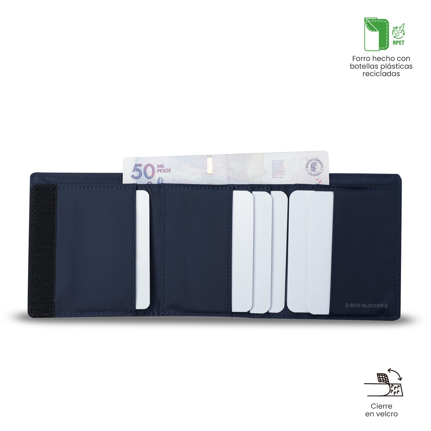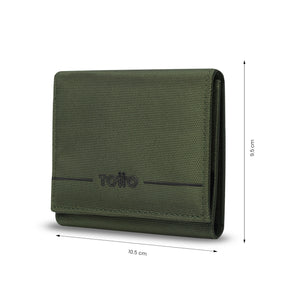 ¡Protege tu información con estilo! La billetera Sayle para hombre está elaborada en poliéster duradero y forro RPET hecho de botellas plásticas recicladas. Con tres cuerpos, cuenta con un cierre en velcro, organizadores para tarjetas y billetes, y un sistema RFID Blocker que impide la captura no autorizada de tus datos. Su material resistente a la abrasión y fácil cuidado la hace ideal para el uso diario. ¡Práctica, segura y ecológica!