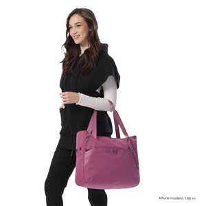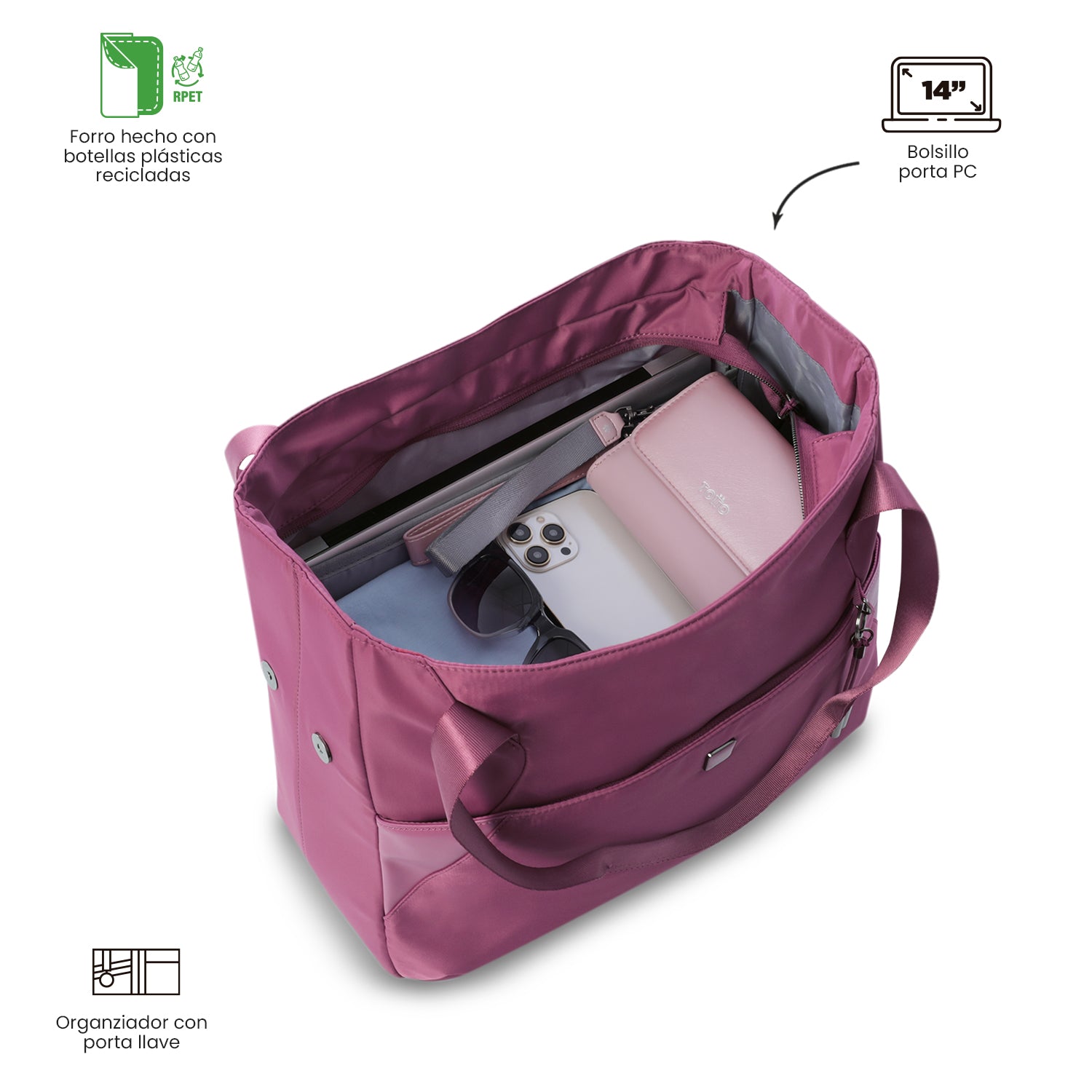 | ¡Suma practicidad a tu rutina! El bolso Roxanne combina poliéster twill con revestimiento en PU y forro RPET elaborado con 6 botellas recicladas. Su interior amplio incluye bolsillo porta laptop de 14 pulgadas, organizador con porta llave, bolsillo interno con cremallera y compartimento posterior plano. Además, incorpora pasador para sistema de ruedas y un llavero en cordón con topes metálicos que añade un toque funcional. ¡Diseño que te acompaña! |