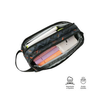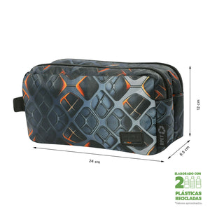 ¡Organiza tus esenciales con la cartuchera Chizal! Su diseño grande cuenta con doble bolsillo para mayor capacidad y una manija fija que facilita su transporte. Fabricada en poliéster 100% con material reciclado RPET, es resistente, de secado rápido y repelente a líquidos. Su logo en cuero sintético le da un toque moderno y funcional. ¡Consíguela hoy y lleva todo lo que necesitas con comodidad!