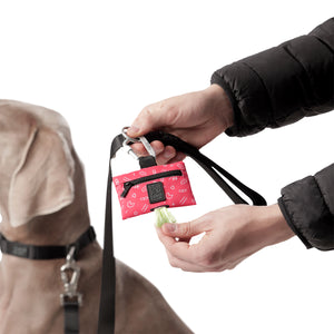 Dispensador de bolsas con cremallera para que puedas llevar otro elemento además de las bolsas en tu salida al parque, elaborado en poliéster con un mosquetón que permite colgarlo en la argolla que trae la correa o llevarse también de manera práctica en el cinturón del pantalón para que estés cómodo. Es liviano, resistente y fácil de limpiar. Disponible en diferentes colores.