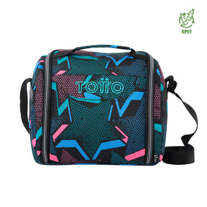 ¡Perfecta para salir de casa! Esta lonchera tiene un compartimento principal de gran apertura, con cierre de doble cremallera; su puller es combinado con metal y plástico. Tiene un organizador con forro en malla y cierre en cremallera, manija en reata, banda en la parte posterior que permite anclarla al sistema del morral de ruedas y reata con herraje de ajuste para colgar en el hombro o cruzada. El material interno es en PVC facilitando su limpieza.