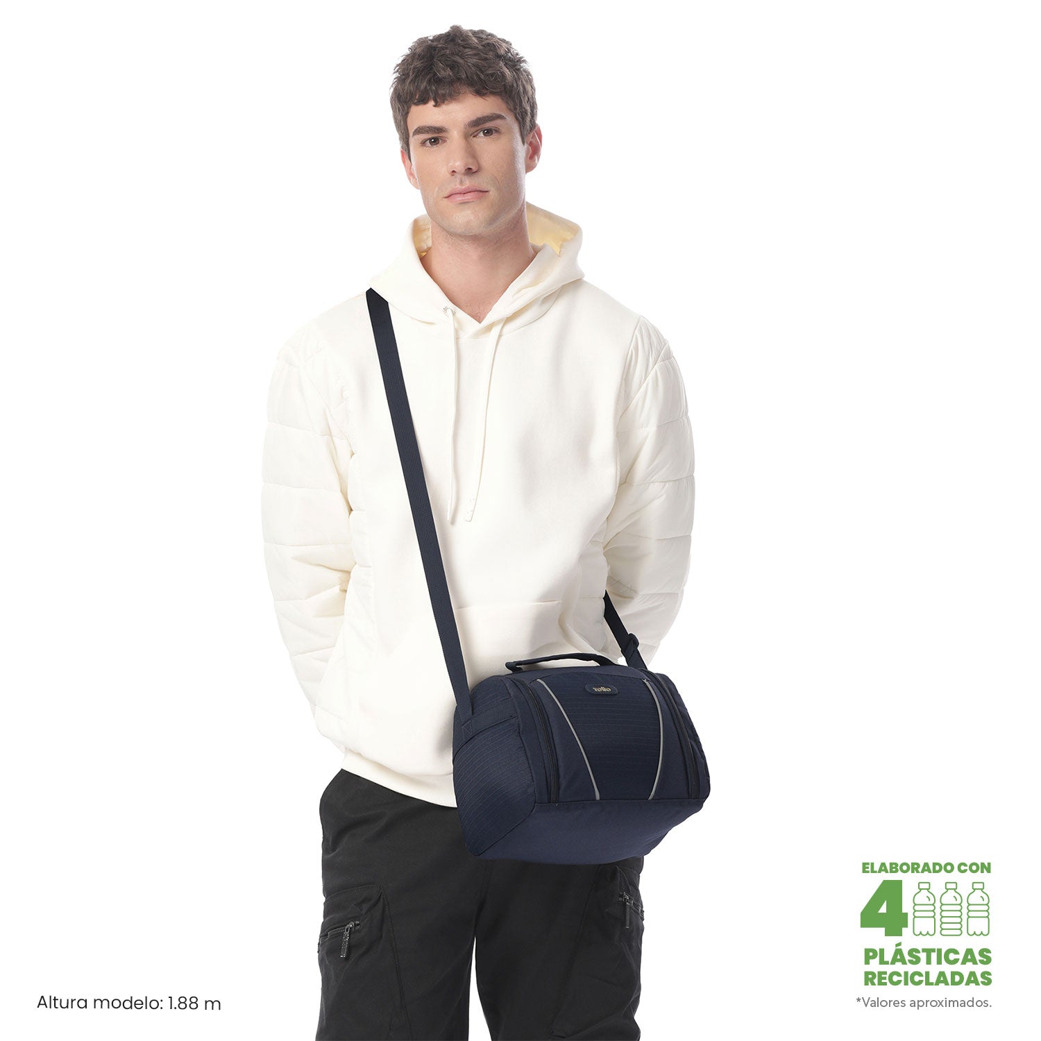 ¡Mantén tus alimentos frescos con la lonchera Devry 2.0! Su aislamiento térmico conserva la temperatura hasta por 5 horas, y su diseño incluye un bolsillo interno con cremallera, detalle reflectivo y pasador para sistema de ruedas. Elaborada con materiales reciclados RPET, es repelente a lÃquidos y fácil de limpiar. La correa ajustable garantiza comodidad al transportarla. Especificaciones |