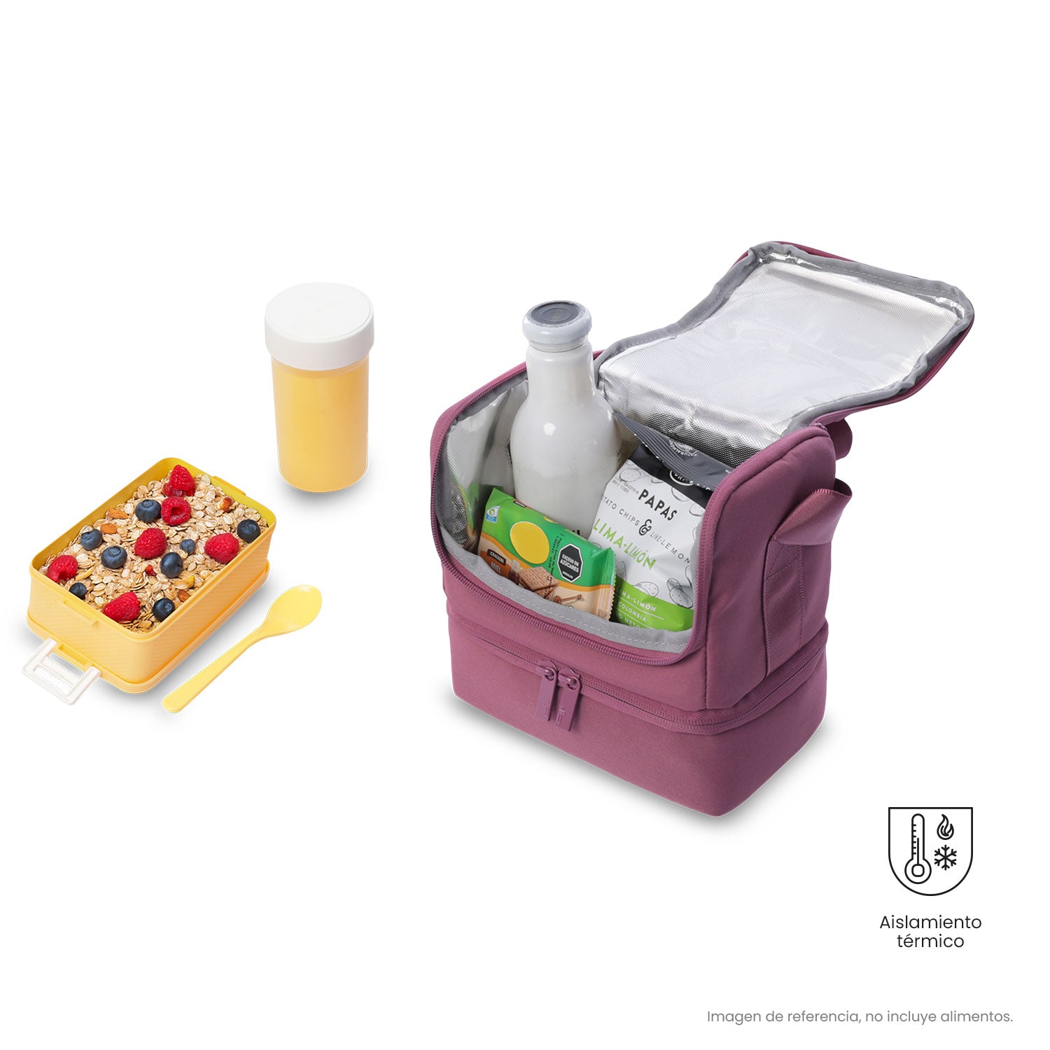 ¡Lleva tus alimentos con total practicidad! La lonchera Quipi mediana es térmica y mantiene la temperatura hasta por 5 horas, dependiendo de las condiciones climáticas de donde te encuentres. Además, es fácil de limpiar y repelente a lÃquidos, incluye pasador para sistema de ruedas y correas ajustables. Su doble compartimento es perfecto para organizar tus comidas. Especificaciones |