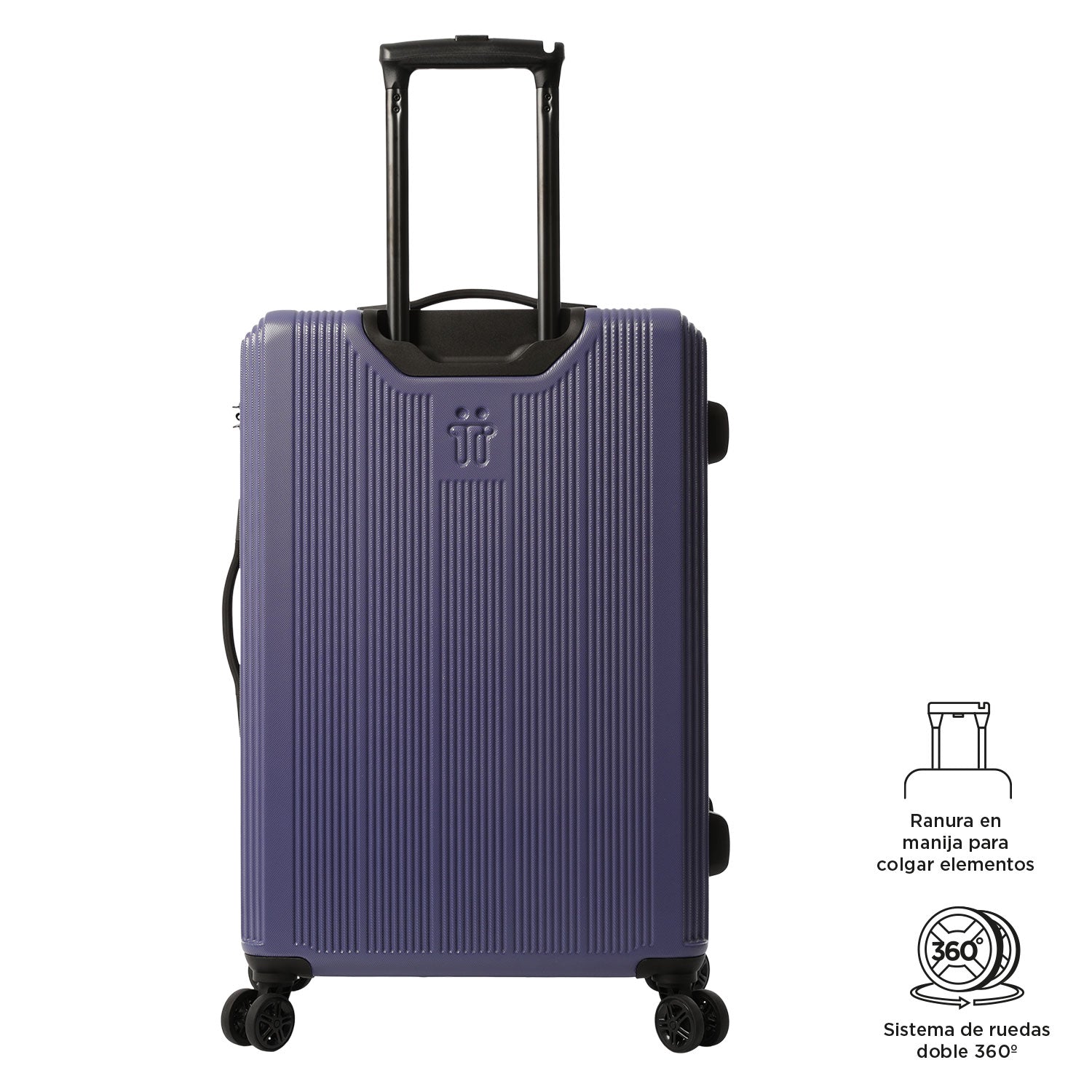 La maleta de viaje mediana 360 Sko es una opción ideal gracias a su capacidad de 23 kg, está equipada con un sistema de rotación de 4 ruedas dobles 360 para facilitar el desplazamiento. Fabricada con un mix de materiales en policarbonato+ABS, es resistente a impactos y cuenta con una manija telescópica ajustable. Su interior forrado en poliéster incluye tapa en malla y correas de ajuste. ¡Haz de tus viajes una experiencia cómoda!