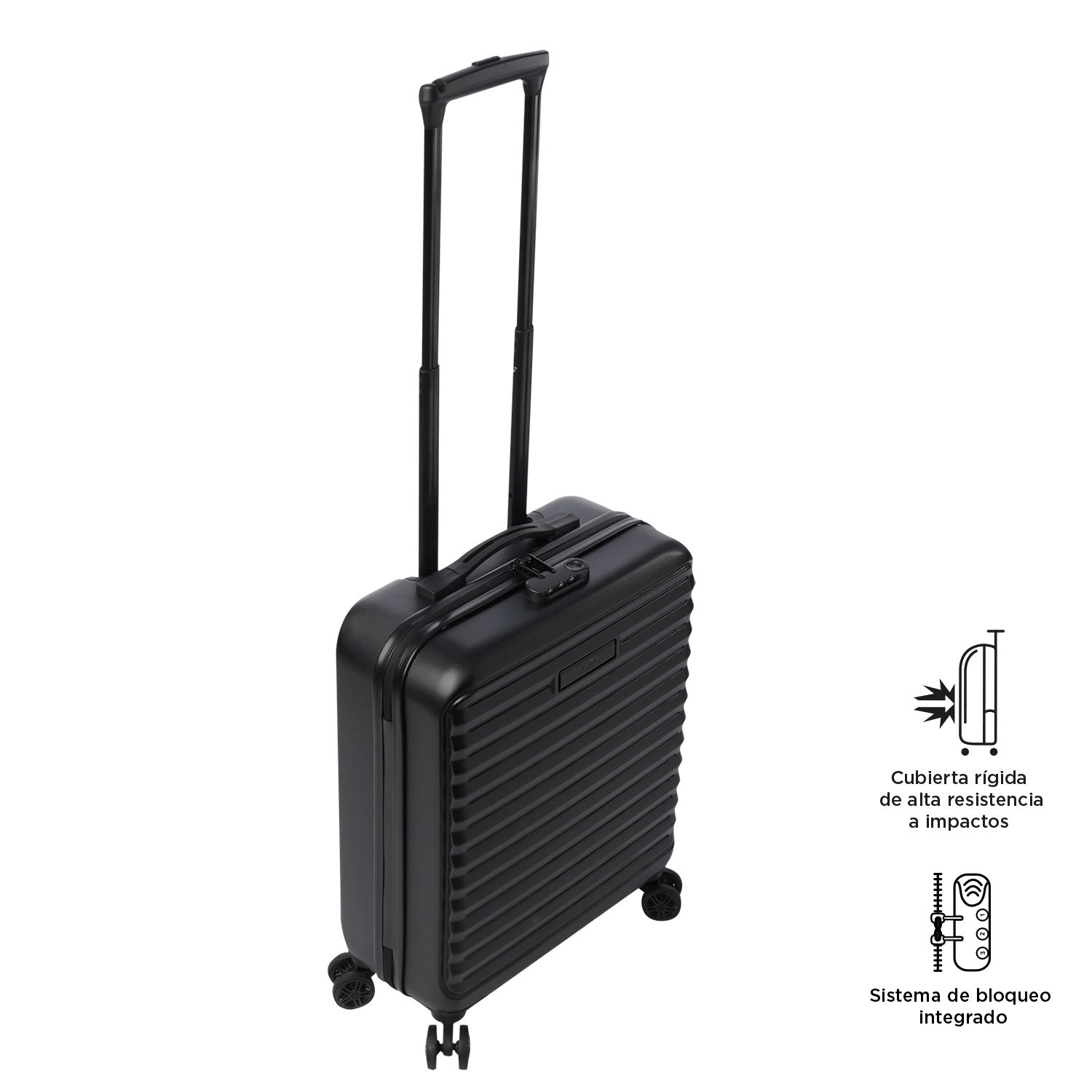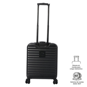 Prepárate para tu próximo viaje con la maleta de mano 360 Helios, pequeña y práctica, con capacidad de 10 kilos. Su sistema de 4 ruedas dobles 360° facilita el desplazamiento en cualquier dirección. Fabricada en un mix de policarbonato + ABS, es resistente a impactos e incluye candado de 3 dígitos, manija telescópica y organizadores internos. Ideal para cabina, valida las medidas con tu aerolínea. ¡Llévala contigo ahora!