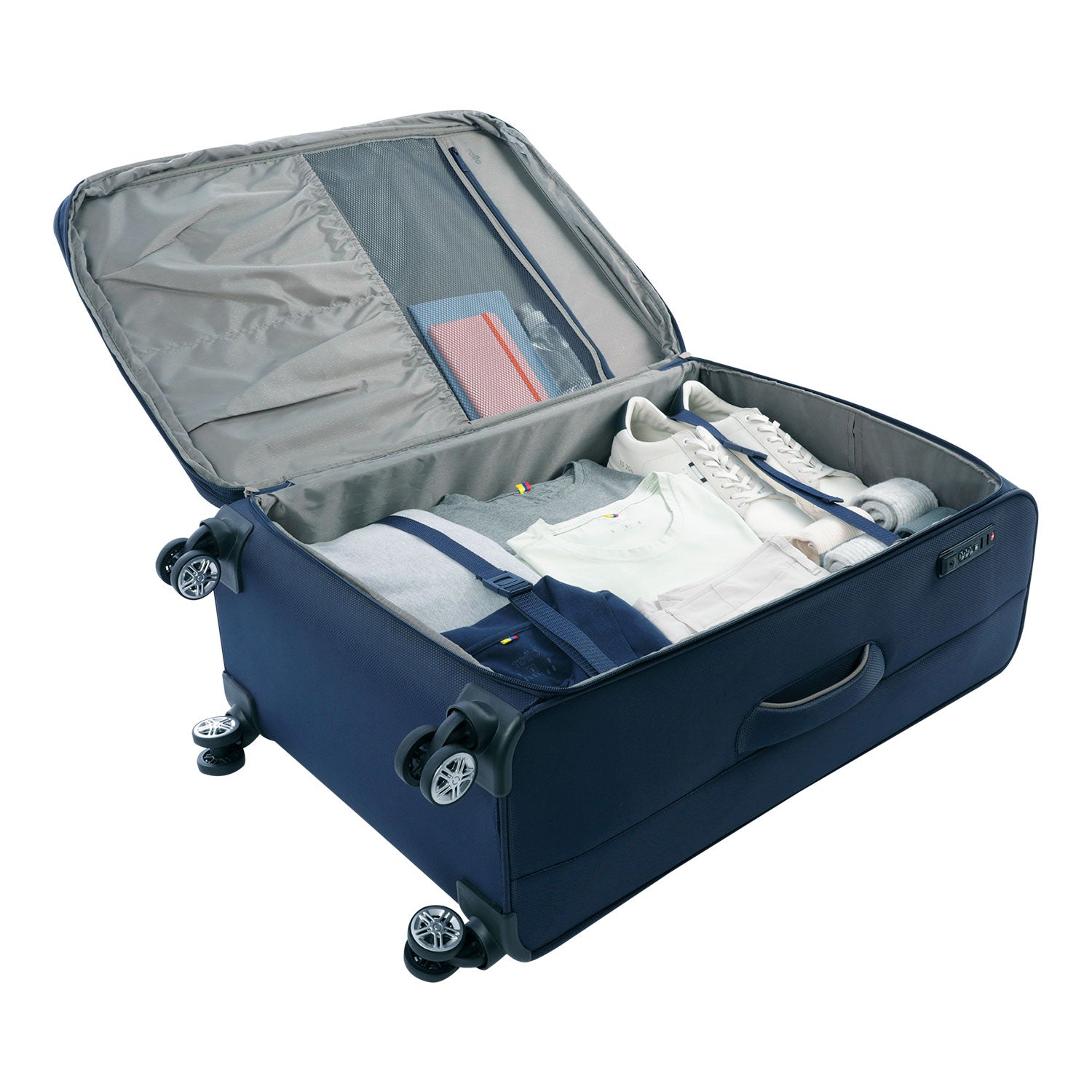 ¡Prepárate para tus aventuras con la maleta de viaje 360 Liviana L! Esta maleta de tamaño grande está diseñada en poliéster resistente y cuenta con múltiples bolsillos de acceso rápido. Su sistema de expansión y doble rueda 360 brindan comodidad y movilidad, mientras que el sistema telescópico ajustable y el candado TSA ofrecen seguridad y facilidad de uso. Internamente, incluye una división con cremallera para organizar tu equipaje.
