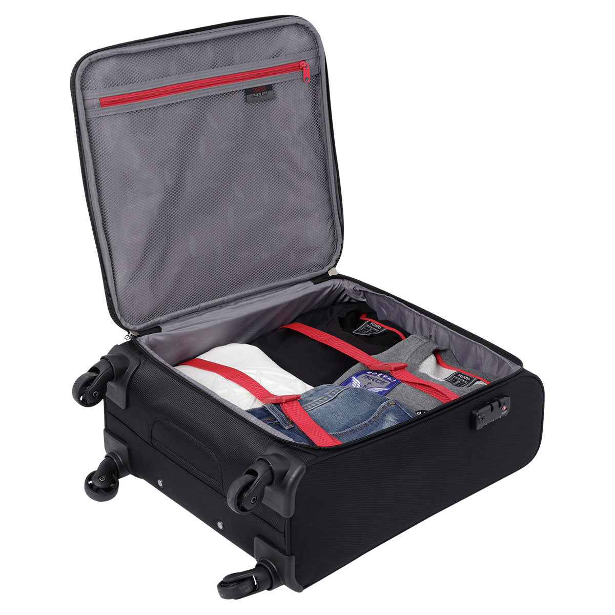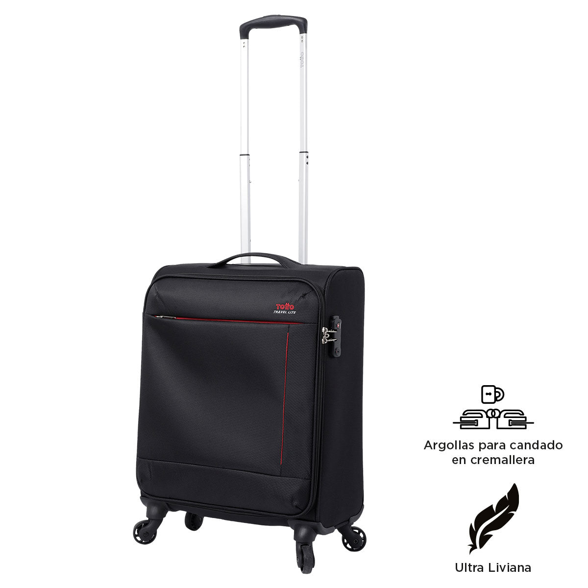 ¡Viaja sin preocupaciones! Nuestra maleta de viaje Travel Lite talla S, es todo lo que necesitas: ligera, ultra liviana y resistente. Está elaborada en poliéster de alta durabilidad con diseño y textura al tacto. Cuenta con manija telescópica y manija lateral para que la puedas manipular en cualquier situación. Para mayor seguridad puedes asegurar tu equipaje con las correas ajustables internas y su sistema de cuatro ruedas que giran a 360º otorga un movimiento suave e intuitivo. Viene con candado TSA, el cual brinda mayor seguridad, ya que puede ser abierto por el personal del aeropuerto sin causar ningun daño. ¡Su diseño te encantará!