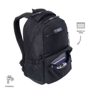 ¡Lleva todo con seguridad y comodidad con el morral antimpacto Comfort! Cuenta con un compartimiento para tu portátil de 16 pulgadas, forro interno en RPET y bolsillo lateral para botella o sombrilla. Sus correas con amortiguación mitigan el impacto en la espalda, haciéndolo más ergonómico y cómodo. Incluye organizador portallaves, bolsillos frontales, malla interna y pasador para anclar al sistema de ruedas de maletas de viaje. ¡Ideal para tu día a día!