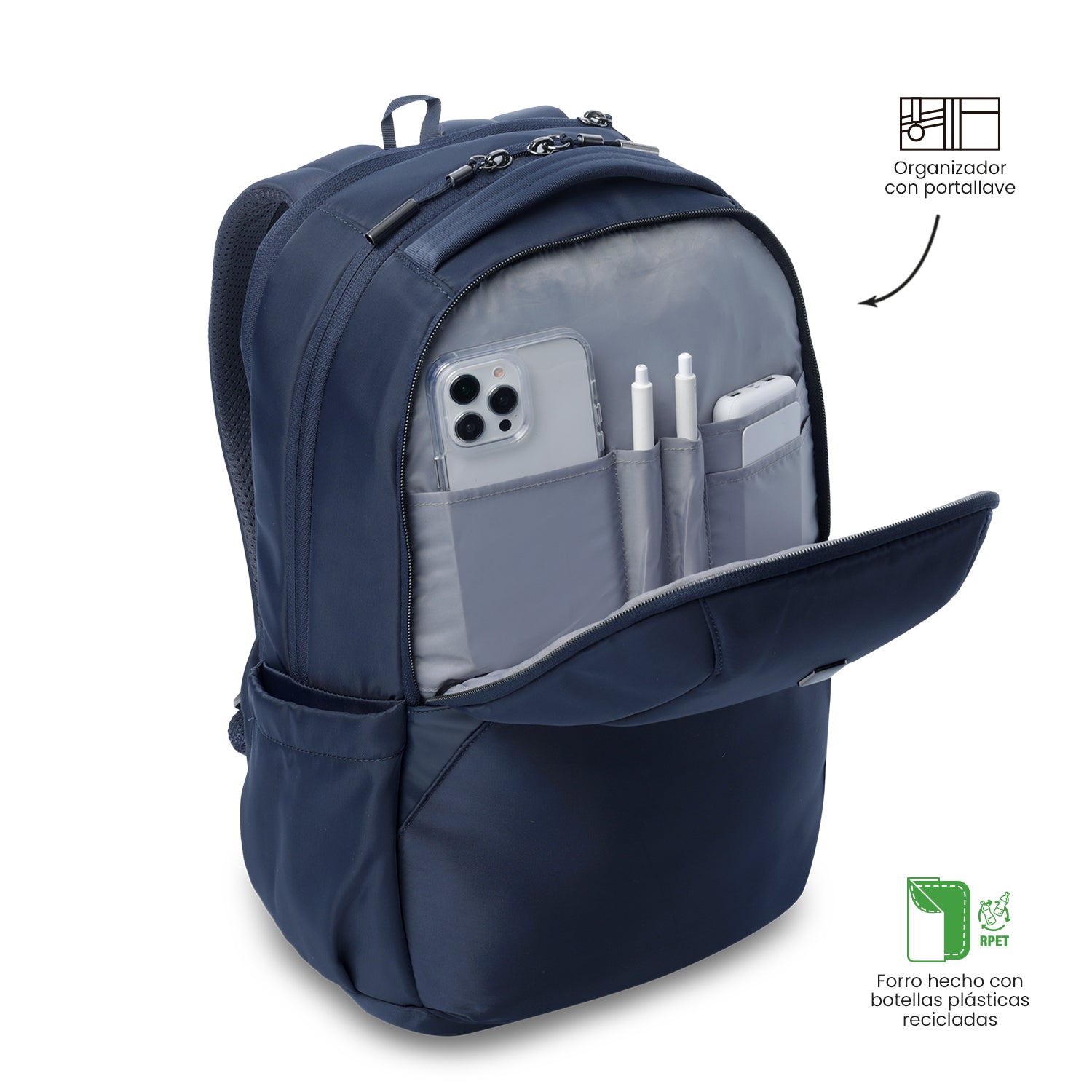 | El morral Roxanne está confeccionado en poliéster twill con forro RPET hecho a partir de 8 botellas recicladas y detalles metálicos. Su interior amplio incluye compartimento para portátil de 16", bolsillo secreto, portallaves, bolsillo interno con cremallera, múltiples espacios de organización, bolsillo para botella y bolsillo adicional en la parte superior del espaldar. Con pasador para ruedas, soportes inferiores metálicos y correas acolchadas. ¡Llévatelo ahora! |