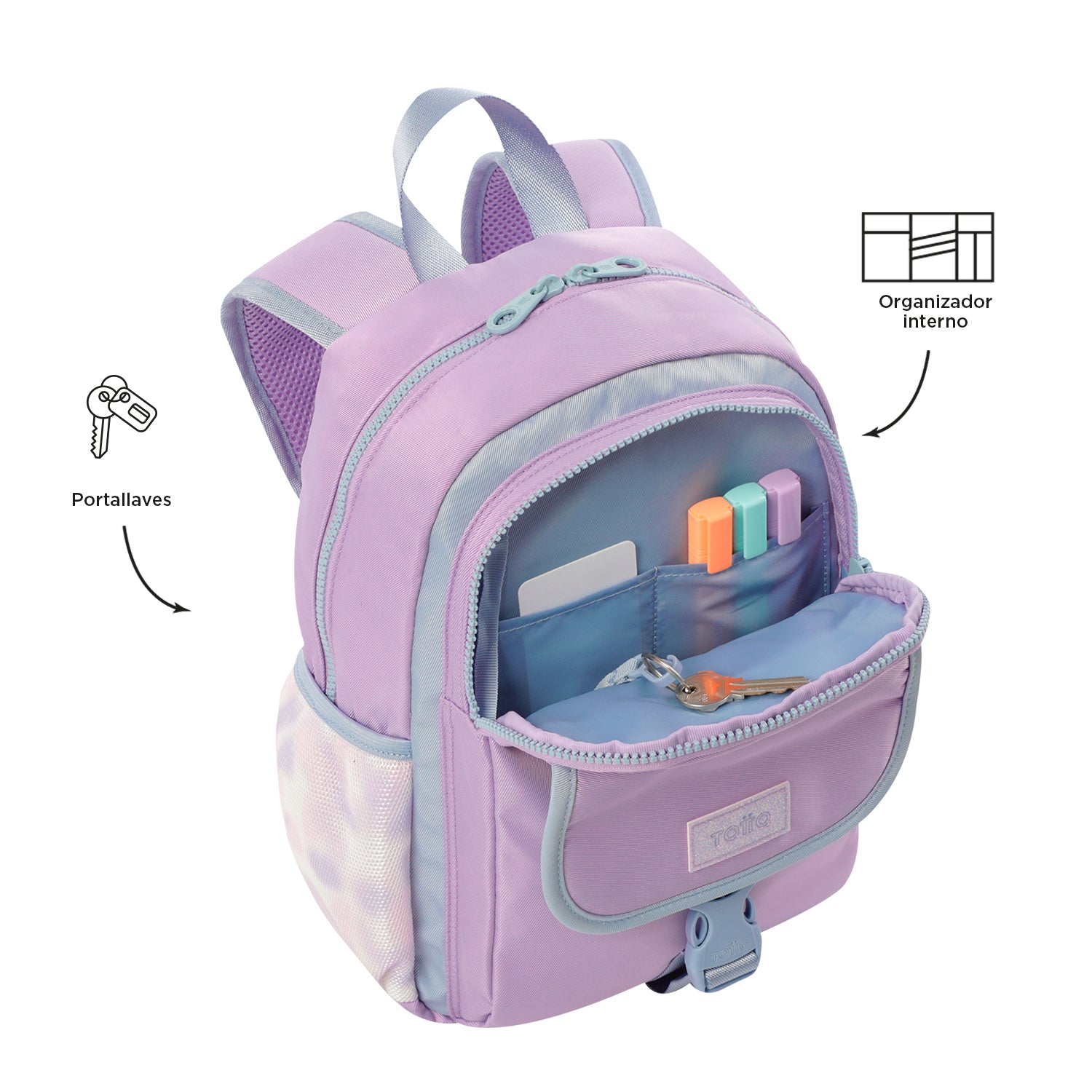 ¡Haz que los días escolares sean más prácticos con La mochila para niña Cluw pequeño! Confeccionado en resistente poliéster twill, cuenta con compartimiento principal con doble cremallera, bolsillos frontales y laterales portabotellas para una organización ideal. Sus correas acolchadas brindan comodidad, mientras la manija superior facilita su transporte. Incluye llavero en forma de estrella que agrega un detalle especial. ¡Hazlo tuyo hoy mismo!