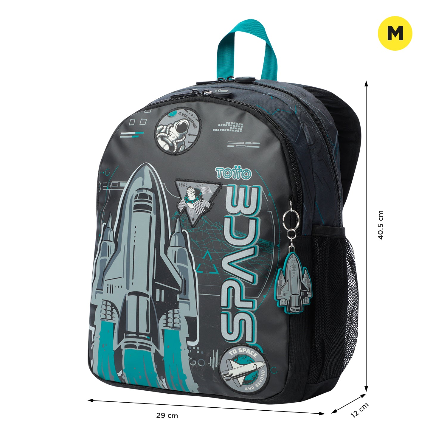 ¡Organiza todo lo necesario para el colegio con la maleta Apolo! Esta mochila mediana está confeccionada en resistente poliéster y tiene un compartimento principal con cierre de doble cremallera, además de correas acolchadas ajustables para los hombros. Incluye bolsillos laterales porta botellas, bolsillos frontales y detalles reflectivos en el frente y los parches. ¡Haz que tu niño vaya preparado y seguro con esta práctica maleta para el colegio!