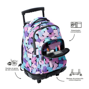 Mochila Ruedas Niña Renglon Azul