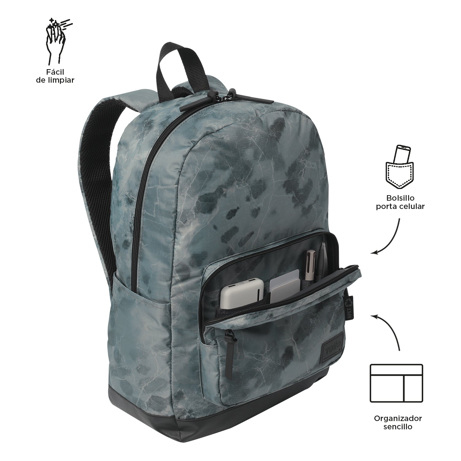 ¡Elige sostenibilidad y funcionalidad con el maletín juvenil Tocax! Diseñado para universitarios, cuenta con un compartimiento porta Laptop de 14 pulgadas y un organizador interno sencillo. Fabricado con lona RPET a partir de 6 botellas recicladas, incluye un bolsillo porta celular, bolsillo para botella y espaldar acolchado con airmesh que brinda mayor comodidad. ¡Adquiere el tuyo hoy mismo y ayuda al planeta!
