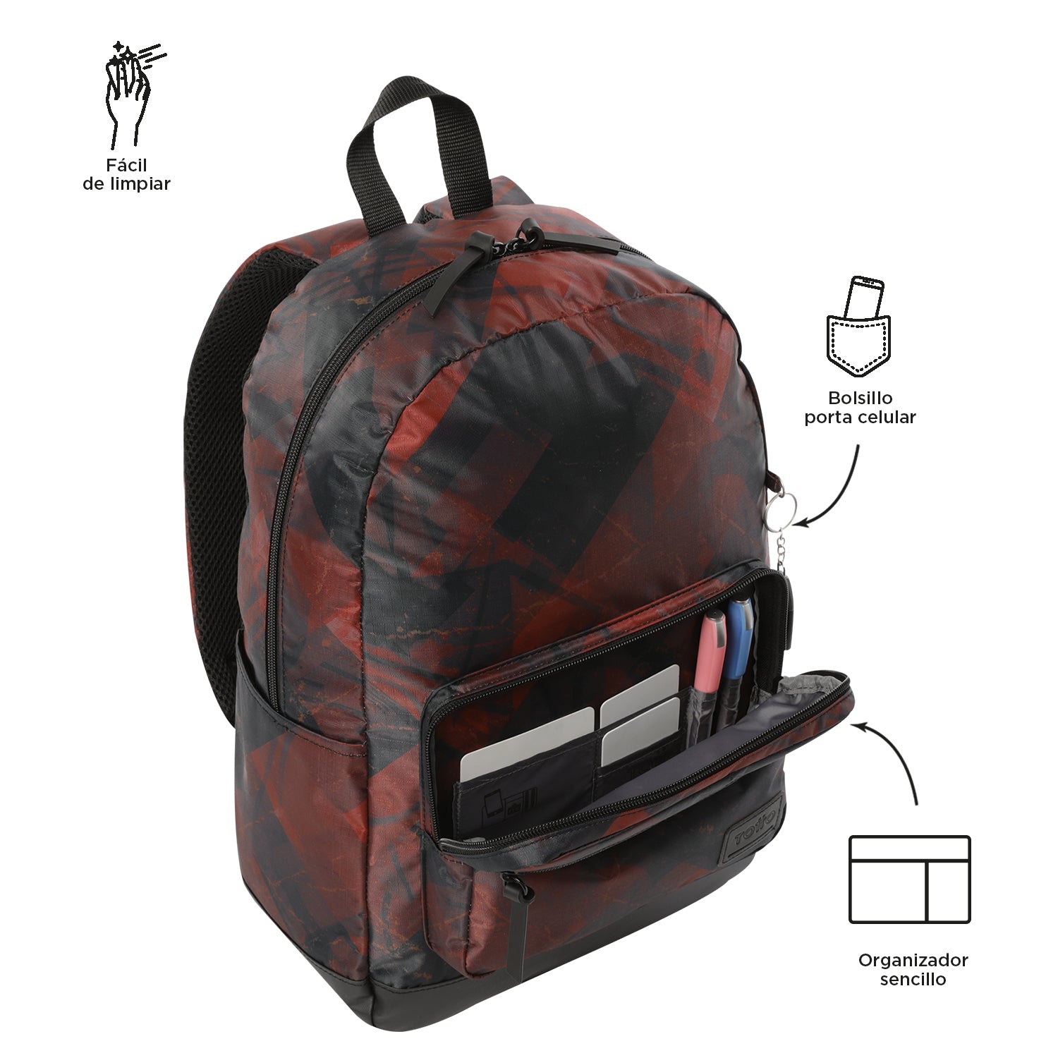 Mochila Universitaria Porta Laptop 14" Tocax Rojo Hombre