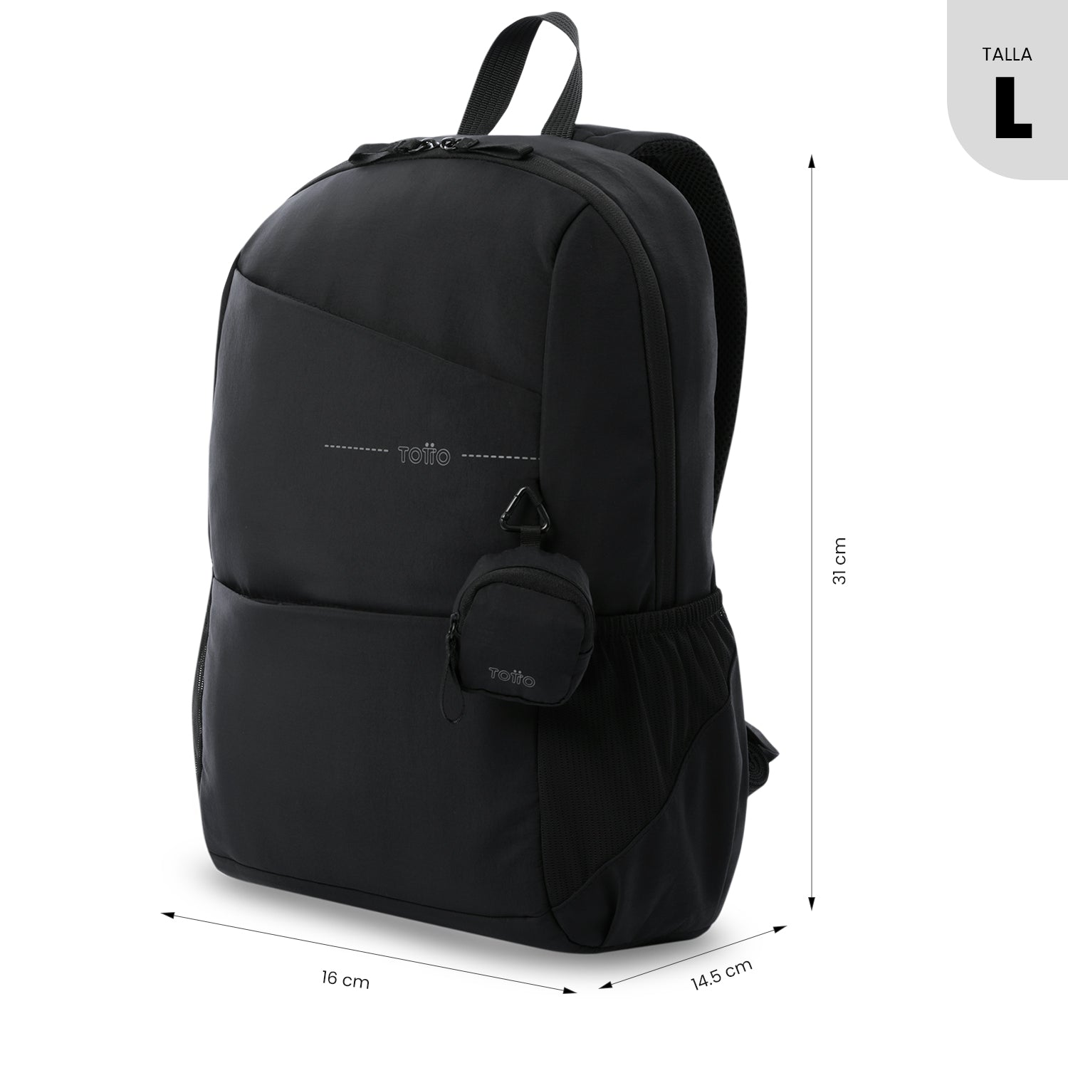 ¡Eleva tu dÃa con practicidad! La mochila grande Suzuka está fabricado en poliéster de tacto suave y su forro RPET está hecho con botellas recicladas. Cuenta con compartimiento para laptop de hasta 16 pulgadas, bolsillo secreto, porta botella, organizador portallaves y pasador para sistema de ruedas. Incluye un llavero tipo monedero, perfecto para llevar audÃfonos u objetos pequeños. Diseñado para acompañarte con comodidad. Especificaciones |