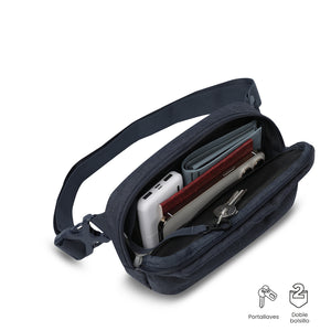¡Lleva todo inteligentemente con Riva, el canguro mediano que se transforma en neceser cuando lo necesitas! Sus compartimentos te permiten llevar llaves, objetos personales y más, con un bolsillo interno con cremallera para lo importante. Fabricado en poliéster resistente a la abrasión y forro RPET, no se deforma ni pierde color. Incluye portallaves, correas ajustables y logo Totto en goma. Multiplica funciones en poco espacio. ¡Todo, contigo!