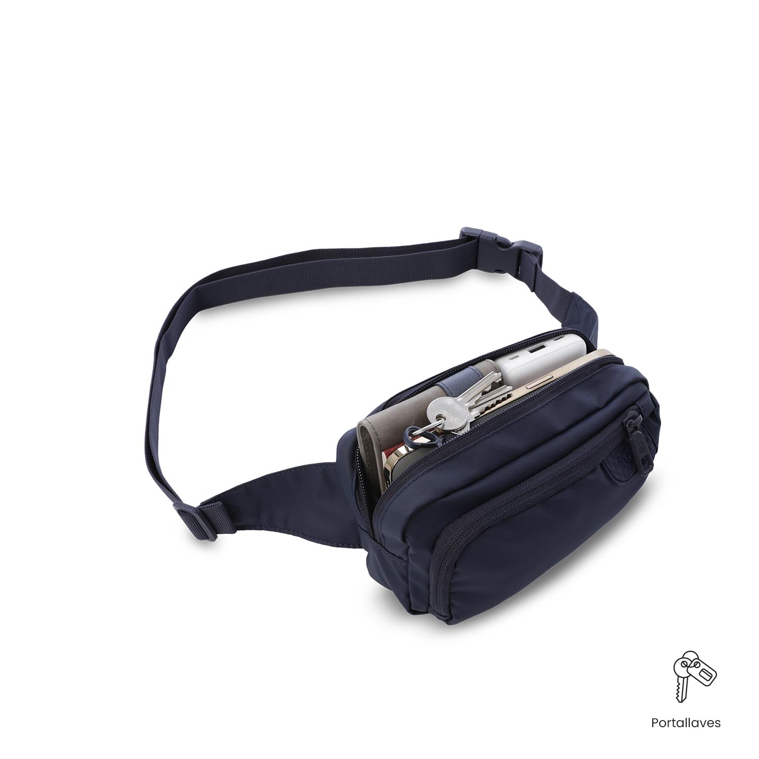 El canguro pequeño Chill Sam es ideal para llevar tus pertenencias de forma práctica y segura. Con doble bolsillo, un bolsillo secreto y portallaves, ofrece organización y facilidad de acceso. Su material es repelente a lÃquidos y su forro en poliéster es resistente y lo hacen fácil de limpiar. Las correas ajustables brindan un ajuste cómodo, mientras que la marquilla en goma añade un toque único. Especificaciones |